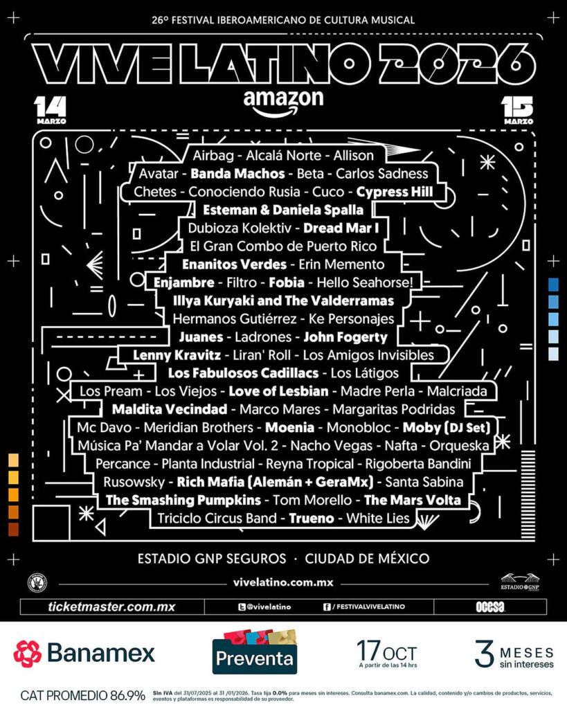 El Vive Latino 2026 se ha consolidado como uno de los encuentros musicales más relevantes de América Latina, reuniendo a decenas de artistas de diversos géneros y generaciones. La edición número 26 del festival ofrecerá un cartel variado, con propuestas que van desde rock, pop, indie, música alternativa y sonidos internacionales, en un evento que celebra la diversidad cultural y sonora.